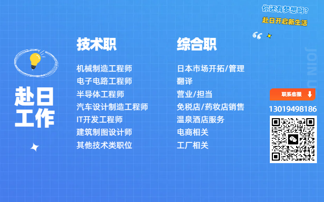 嚴海赴日(workinjapan.cn)是專業的赴日工作服務平臺,是大連嚴海人力資源有限公司旗下品牌。主要提供日本就職(工作簽)/日本留學(半工半讀),等最新工作信息和資訊,為想赴日工作的小伙伴們提供專業的、一對一的咨詢,為您職業生涯規(guī)劃、永居辦理、在日期間換職、轉換簽證等方面提供支援。